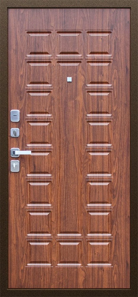 Надежная входная Дверь Спартак Орех темный премиум класса по цене 33 863 руб. Большая толщина стали защитит от проникновения в ваш дом, квартиру или коттедж. Используется очень качественная фурнитура: замки, цилиндры, ручки, защелки. Покрытие и отделка двери изготовлено под внимательным контролем производителя. Дверь имеет долгий срок службы и гарантию.