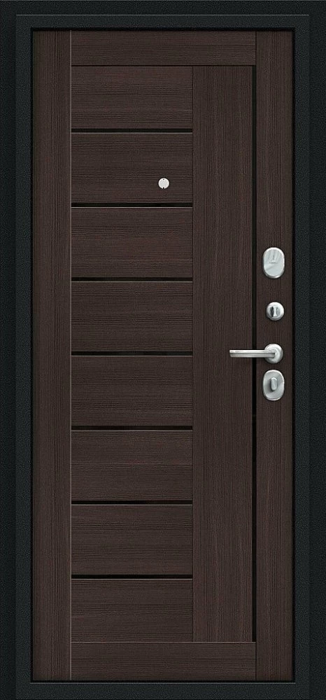 Надежная входная Дверь Браво Проф Букле черное/Wenge Veralinga премиум класса по цене 32 763 руб. Большая толщина стали защитит от проникновения в ваш дом, квартиру или коттедж. Используется очень качественная фурнитура: замки, цилиндры, ручки, защелки. Покрытие и отделка двери изготовлено под внимательным контролем производителя. Дверь имеет долгий срок службы и гарантию.
