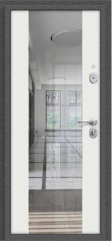 Надежная входная Дверь Браво Север-7 Антик Серебряный/Белый Зеркало премиум класса по цене 31 163 руб. Большая толщина стали защитит от проникновения в ваш дом, квартиру или коттедж. Используется очень качественная фурнитура: замки, цилиндры, ручки, защелки. Покрытие и отделка двери изготовлено под внимательным контролем производителя. Дверь имеет долгий срок службы и гарантию.