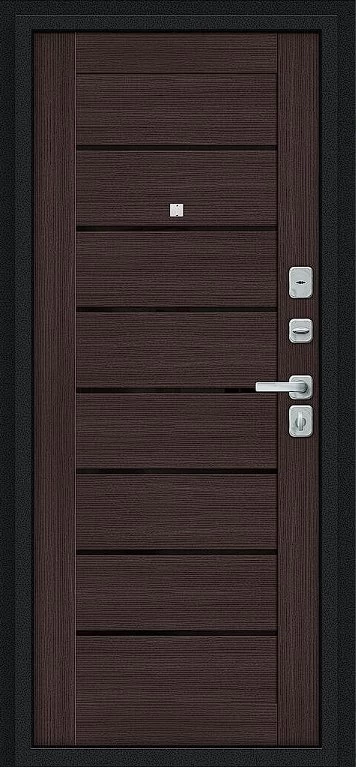 Надежная входная Дверь Браво Техно/BChrome Букле черное/Wenge Melinga премиум класса по цене 34 663 руб. Большая толщина стали защитит от проникновения в ваш дом, квартиру или коттедж. Используется очень качественная фурнитура: замки, цилиндры, ручки, защелки. Покрытие и отделка двери изготовлено под внимательным контролем производителя. Дверь имеет долгий срок службы и гарантию.