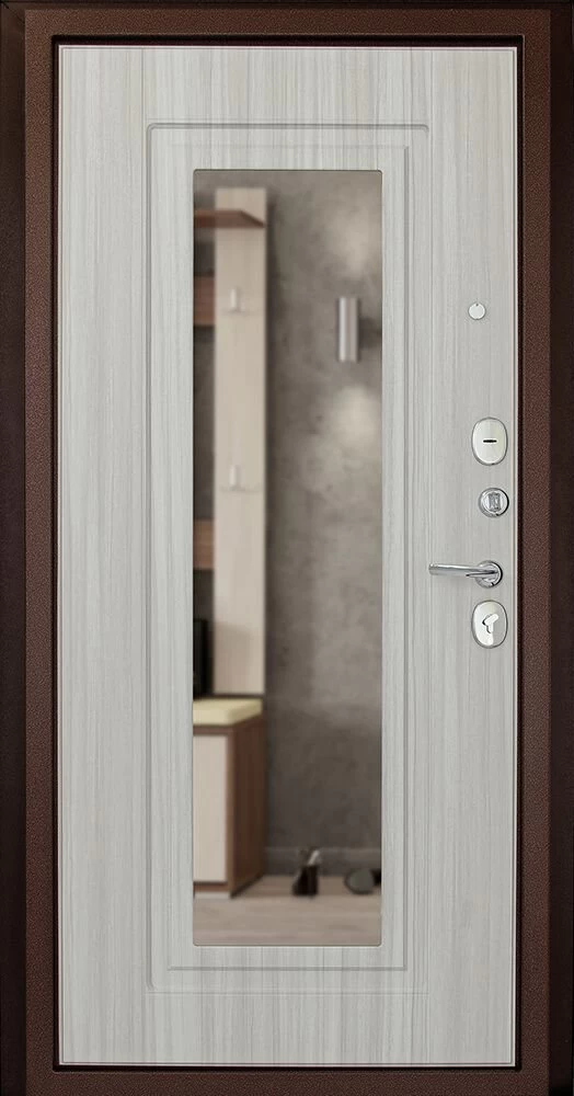 Надежная входная Дверь ДК Рубикон зеркало премиум класса по цене 32 013 руб. Большая толщина стали защитит от проникновения в ваш дом, квартиру или коттедж. Используется очень качественная фурнитура: замки, цилиндры, ручки, защелки. Покрытие и отделка двери изготовлено под внимательным контролем производителя. Дверь имеет долгий срок службы и гарантию.